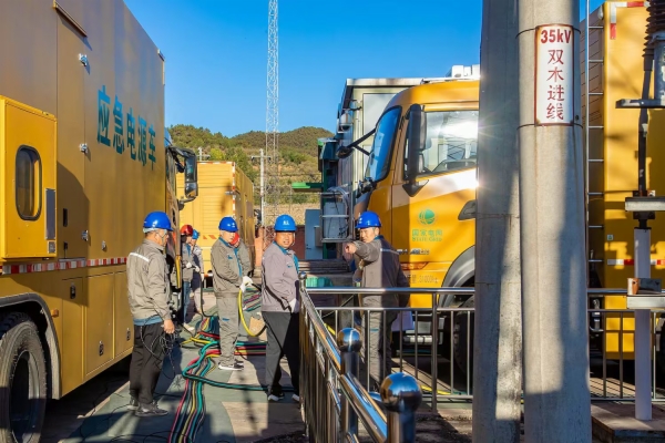 作業(yè)中,現(xiàn)場工作人員默契配合,有條不紊地進(jìn)行安全措施布控、倒閘操作等工作,并通過1臺3000千瓦發(fā)電車及輔車、3臺1000千瓦中壓發(fā)電車并機(jī)分別接入35千伏木頭凳變電站兩段10千伏母線,在該變電站上級電源檢修期間,保障了青龍滿族自治縣木頭凳鎮(zhèn)3條10千伏線路不間斷供電。