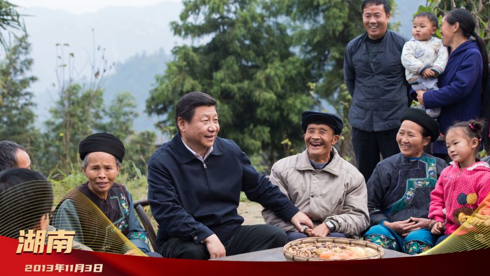 2013年11月3日,習近平來到湖南省湘西土家族苗族自治州花垣縣十八洞村。在苗族貧困村民施齊文家中看望時,習近平坐下來同一家人算收支賬,詢問有什么困難、有什么打算,勉勵一家人用勤勞和智慧創(chuàng)造美好生活。隨后,習近平同村干部和村民代表圍坐在一起,親切地拉家常、話發(fā)展,聽村民們談變化、講困難、道實情。