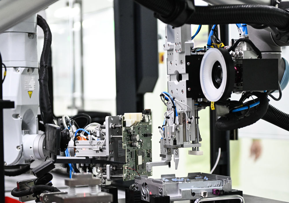 2024年2月27日,在江蘇無錫車聯(lián)天下信息技術(shù)有限公司,機(jī)器人在生產(chǎn)智能網(wǎng)聯(lián)汽車座艙域控制器。近年來,無錫市全力提升產(chǎn)業(yè)創(chuàng)新能力和數(shù)字化綠色化發(fā)展水平,一批企業(yè)通過生產(chǎn)換線、人機(jī)協(xié)同、“上云用數(shù)賦智”等,打造智能工廠、智能車間,推動(dòng)企業(yè)降本、提質(zhì)、節(jié)能、增效,為制造業(yè)高質(zhì)量發(fā)展提供新動(dòng)能。