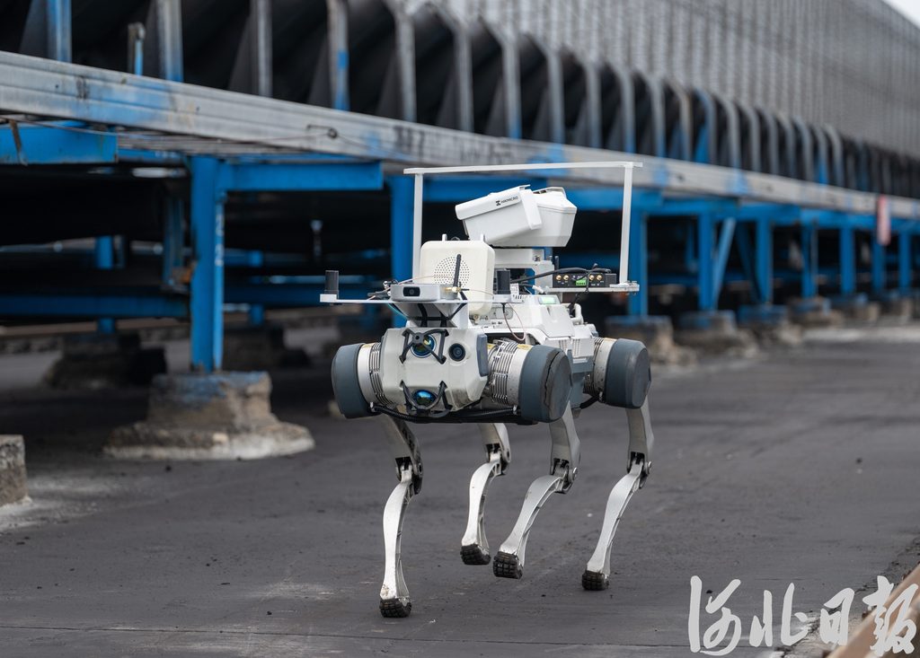 7月30日,河北港口集團(tuán)秦港股份煤炭堆場,四足仿生機(jī)器人正在巡檢。
