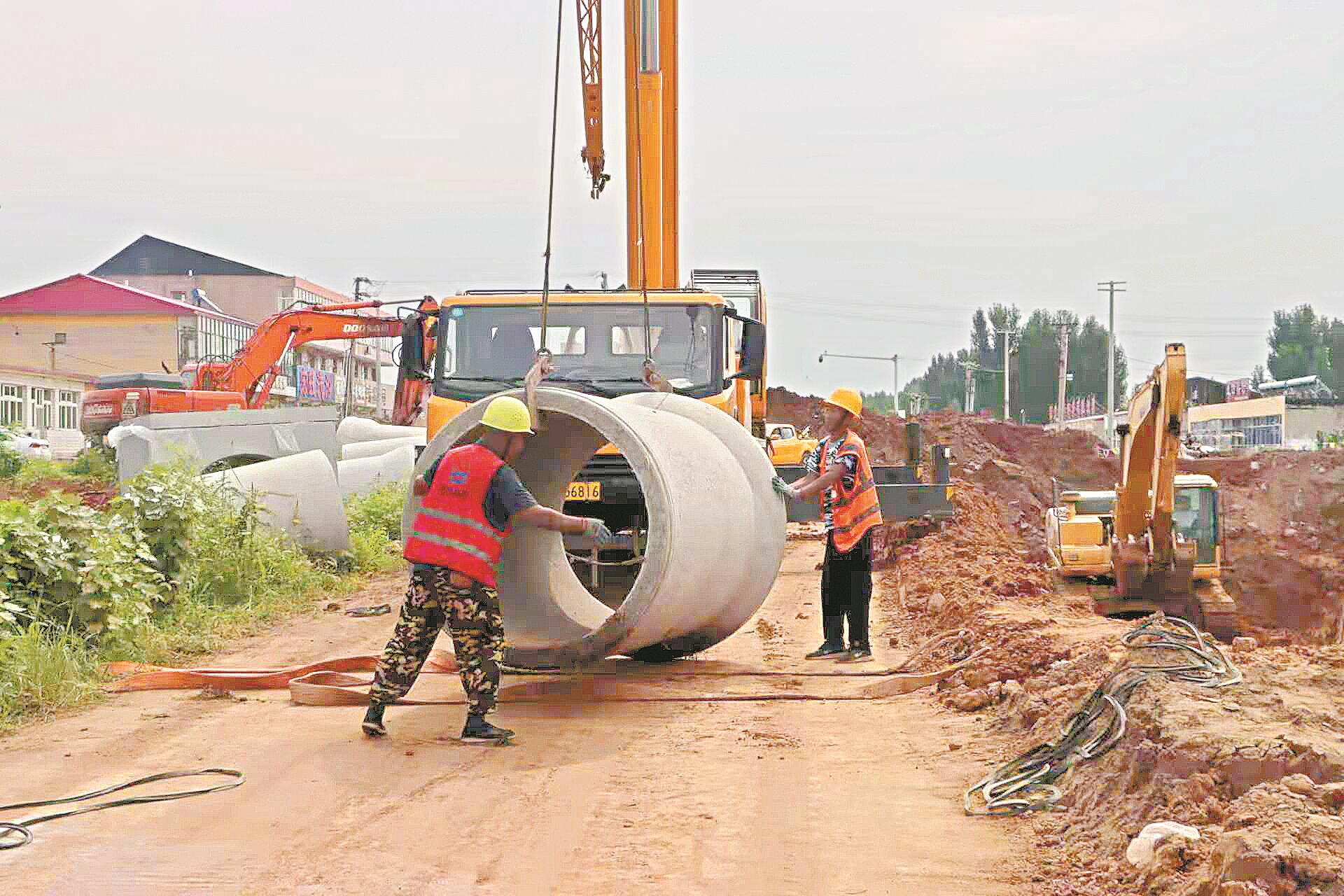 近日,記者在永平大街管網(wǎng)建設(shè)工程施工現(xiàn)場看到,多臺挖掘機(jī)正在緊張作業(yè),轟鳴聲此起彼伏,工人們各司其職,有的在鋪設(shè)管道,有的在平整路基,呈現(xiàn)出一派繁忙有序的施工景象。