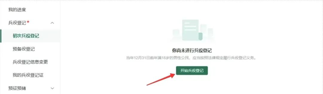 進入全國征兵網(wǎng)首頁,尚未進行兵役登記的男青年,需點擊“兵役登記進入頁面進行登記。