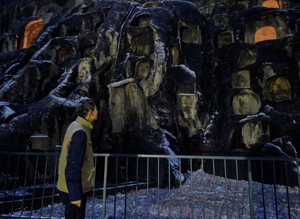 2025年最后一天,龍門石窟研究院石窟保護(hù)研究與遺產(chǎn)監(jiān)測(cè)中心副主任、研究館員馬朝龍像往常一樣在窟龕間夜巡。自大學(xué)畢業(yè)到這里工作以來,這樣的巡查,他已不知走了多少回。
