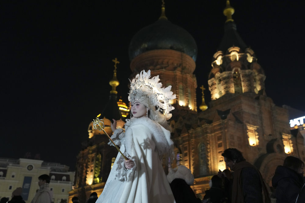 2025年12月7日,第六屆哈爾濱采冰節(jié)在松花江畔開幕,精彩的采冰儀式和民俗體驗互動吸引眾多市民和游客參與其中。這是采冰節(jié)現場的民俗表演。