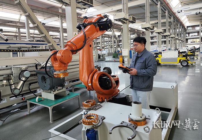 唐山百川機器人共享制造工廠,技術人員正在調試設備。李冠橦 攝